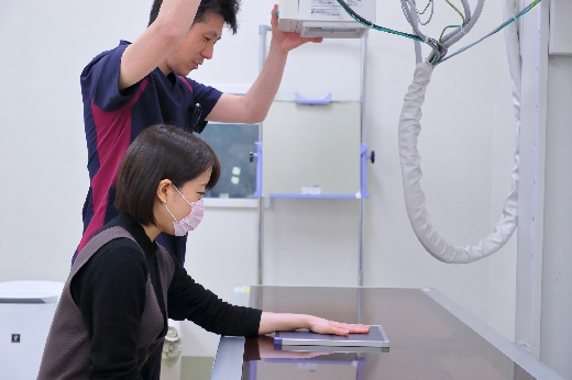 当院では初診時と1年毎の定期検査として手・足・肺のX線撮影をさせていただいています。