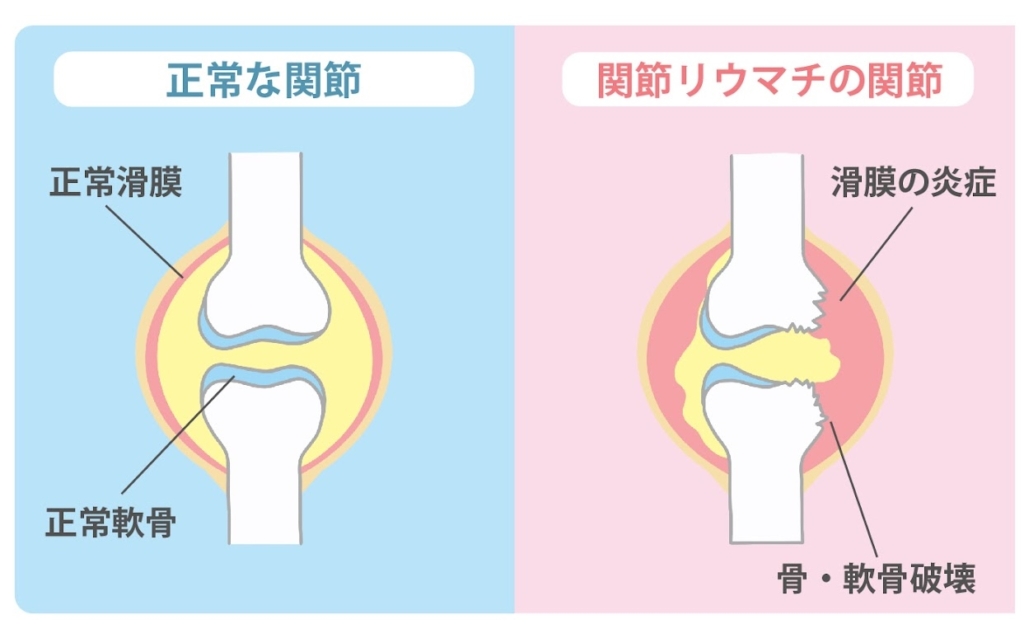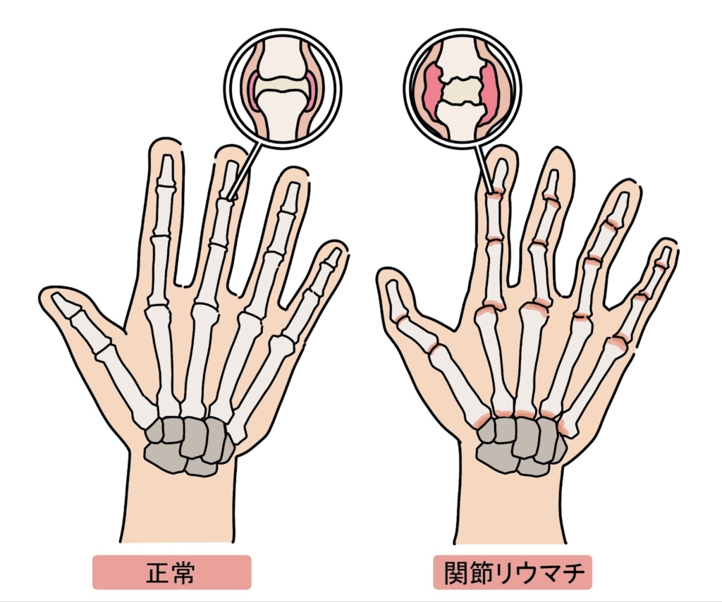 関節リウマチは、手足の関節が腫れて痛み、こわばってしまう病気です。例えば朝起きたときに手指が強ばって動かしにくい(朝のこわばり)状態が1時間以上続く場合はリウマチの可能性があります。また、膠原病(自己免疫疾患の総称)には関節リウマチのほか、発熱や皮膚の発疹、口や目の乾燥など全身の症状をきたす病気も含まれます。「関節が左右対称に痛む」「原因のはっきりしないだるさが長引く」など、日常生活で気になる変化がありましたら、早めに専門医の診察を受けることをおすすめします。もちろん、関節痛があるからといって必ずしもリウマチとは限りませんが、専門医に相談することで原因をはっきりさせることができます。