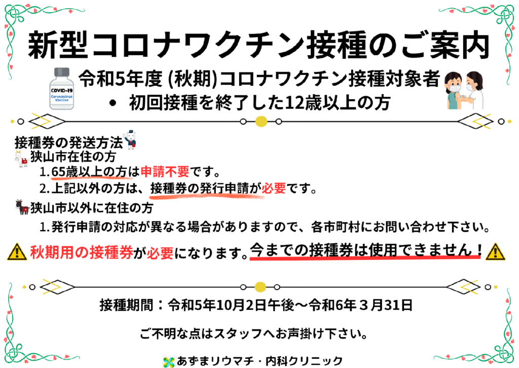 ※秋期の専用接種券が必要です。各市町村までお問い合わせの上、専用接種券を必ずお持ちください。